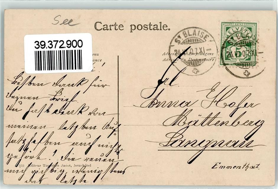 2072 St-Blaise 1907 - Au bord de lac Ort lt. Stempel
