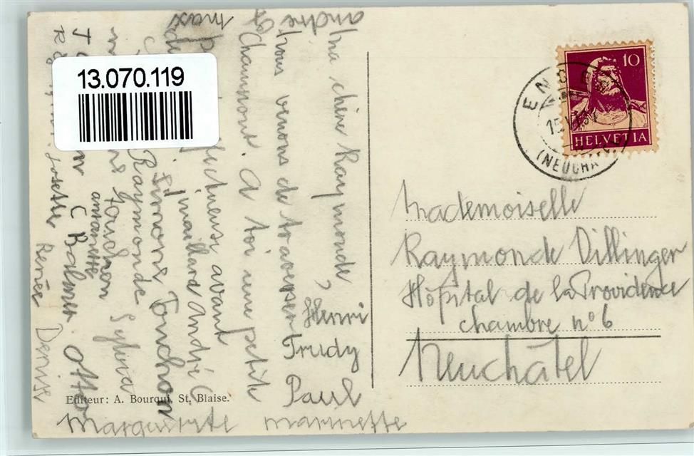 2073 Enges 1934 - Teilansicht, Verlag Bourqui, gute Erhaltung AK