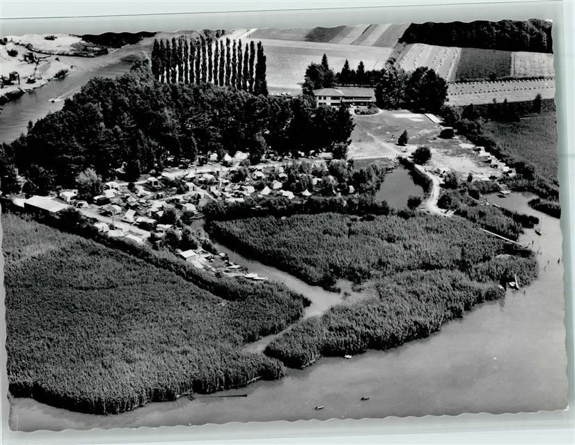 Thielle, Luftbild - Ferienheim Gelände, Camping am Neuenburgersee, sehr gute Erhaltung AK