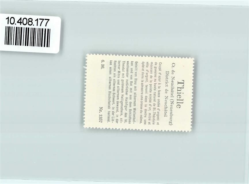 Thielle, Vignette Wappen Kaffee Hag ca 1920-1940 Hl. Theodul Bischofsstab Schwert