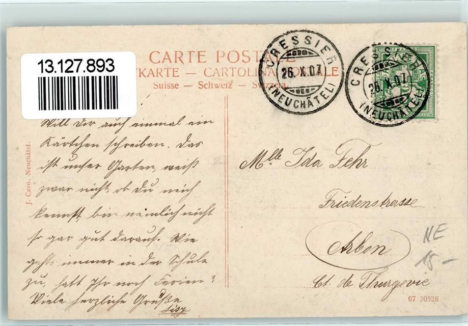 2088 Cressier NE 1907 - Pensionnat Sandoz