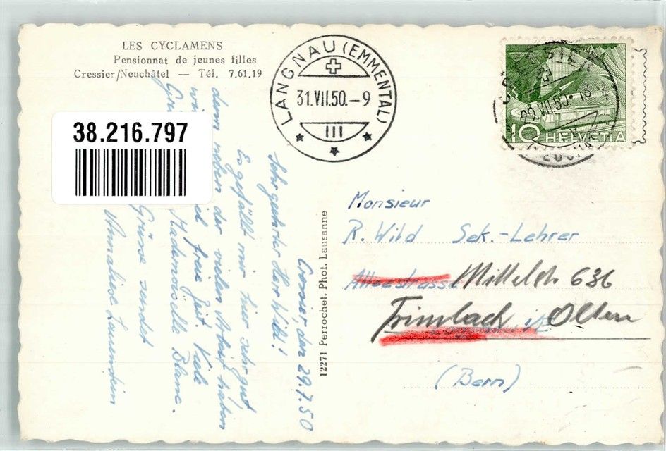 2088 Cressier NE 1950 Foto AK Pensionnat de jeunes filles