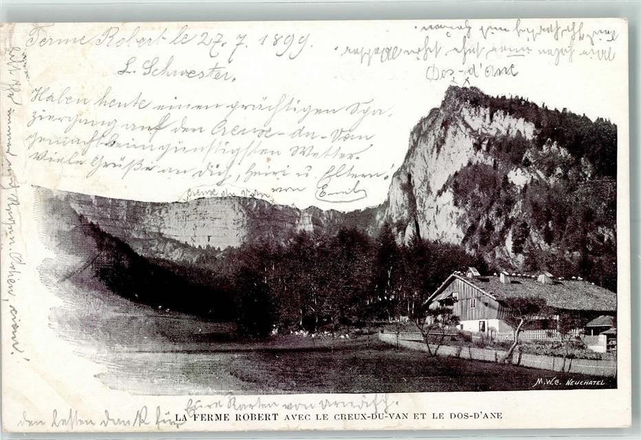 Noiraigue, La ferme Robert avec le creux-du-van et le dos-d'axe