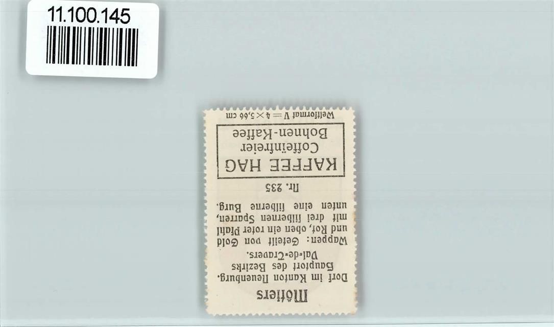 Môtiers NE, Vignette Wappen Kaffee Hag ca 1920-1940