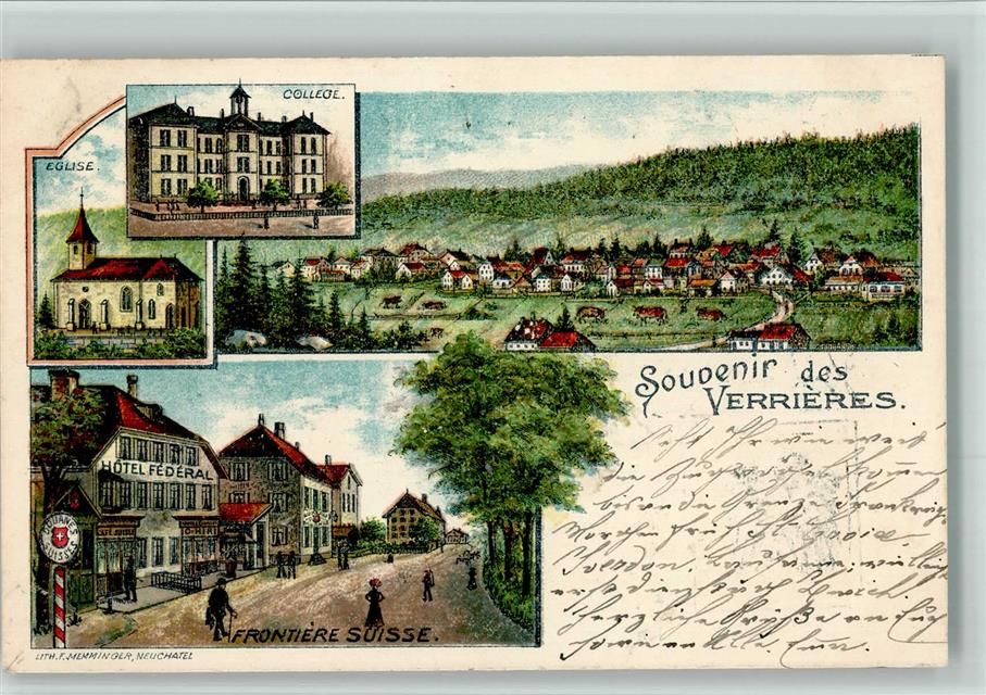 2126 Les Verrières 1901 BOAKC Zoll Frontiere Lithographie