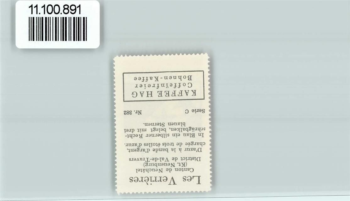 2126 Les Verrières - Vignette Wappen Kaffee Hag ca 1920-1940 Les Verriéres