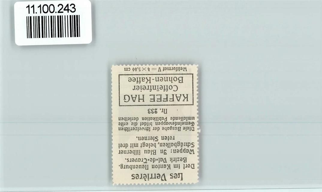 Les Verrières, Vignette Wappen Kaffee Hag ca 1920-1940