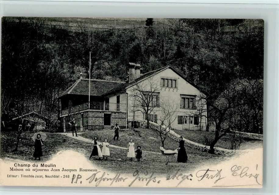 Champ-du-Moulin, Volkstypen, Maison ou sejourna Jean Jacques Rousseau,Verlag Timothee Jacot Nr. 248, gute Erhaltung AK