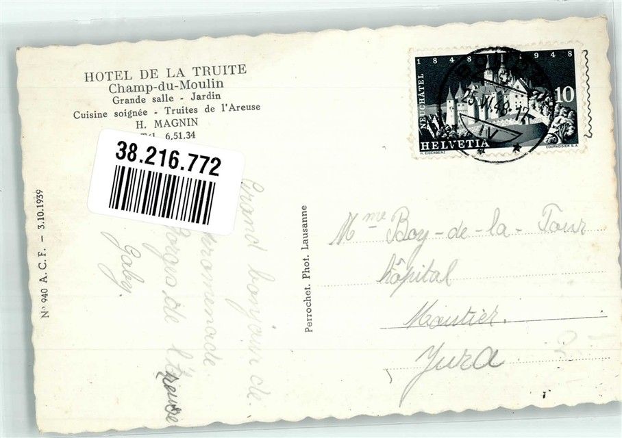 2149 Champ-du-Moulin 1948 Foto AK Hotel de la Truite