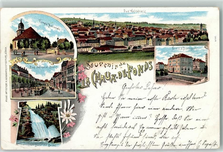 La Chaux-de-Fonds, Temple Nationale Rue Léopold-Robert Saut du Houbs École d'Horlogerie Lithographie