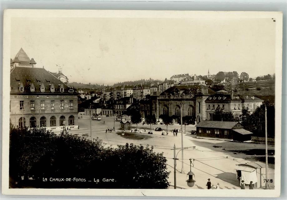 2300 La Chaux-de-Fonds 1929 Foto AK Bahnhof Straßenbahn