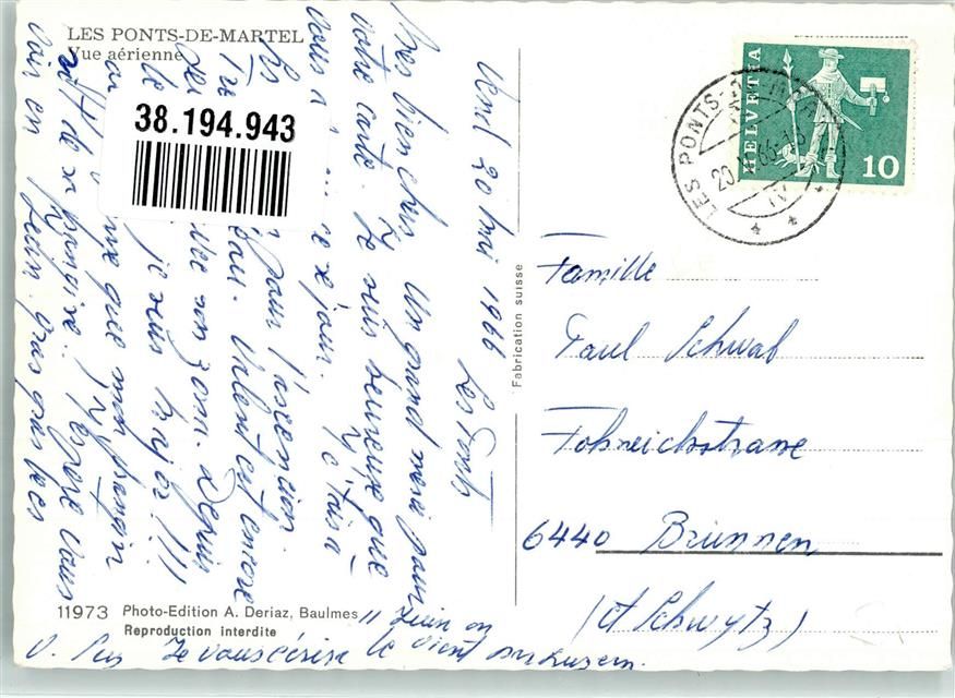 2316 Les Ponts-de-Martel Martel-Dernier 1966 Foto AK Fliegeraufnahme