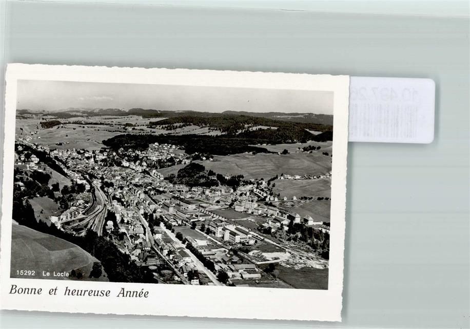 Le Locle, Fliegeraufnahme Neujahr Foto 10cm x 7cm, rückseitig Haftspuren