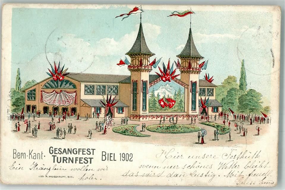 2500 Biel/Bienne 1902 Lithographie Kant. Gesang Turnfest
