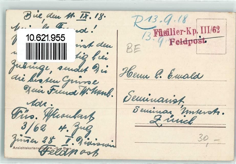 Biel/Bienne, Feldpost Füsilier Kp III 62
