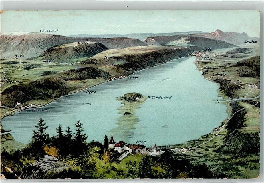 Twann, Ort lt. Stempel Erlach Ligerz Neuveville St. Petersinsel