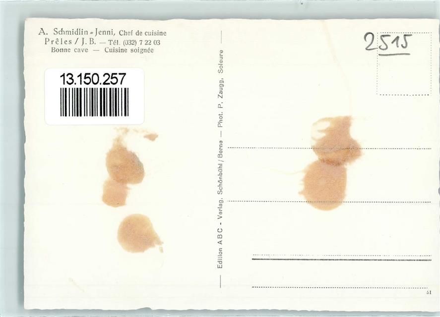 2515 Prêles Karte beschädigt Fliegeraufnahme
