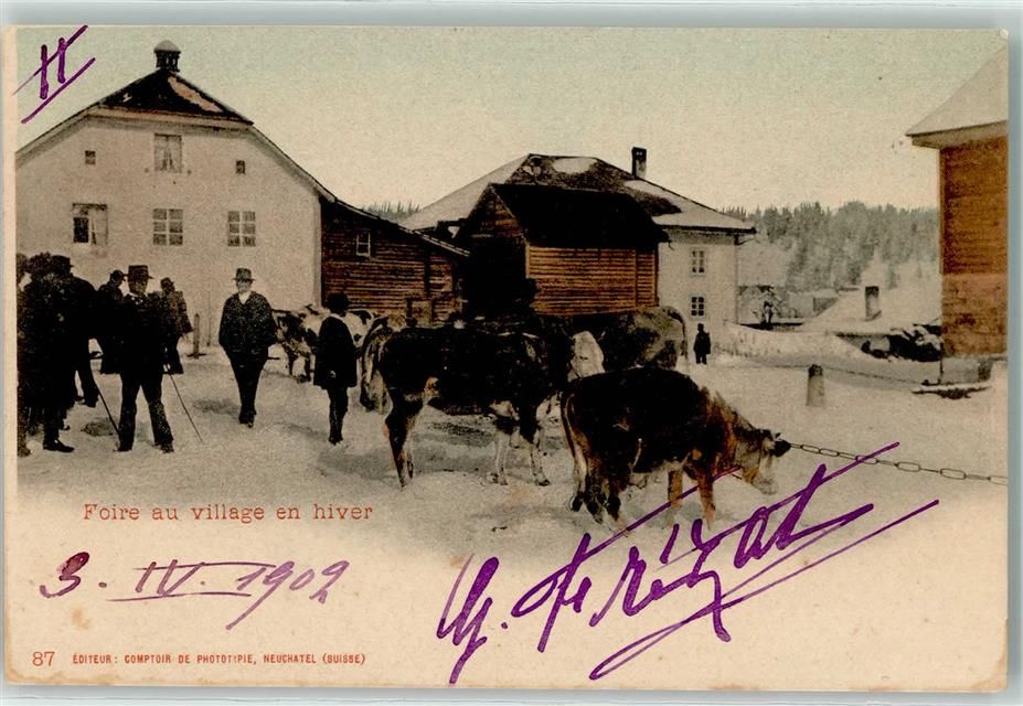 2520 La Neuveville 1902 - Foire au village en hiver Ort lt. Stempel