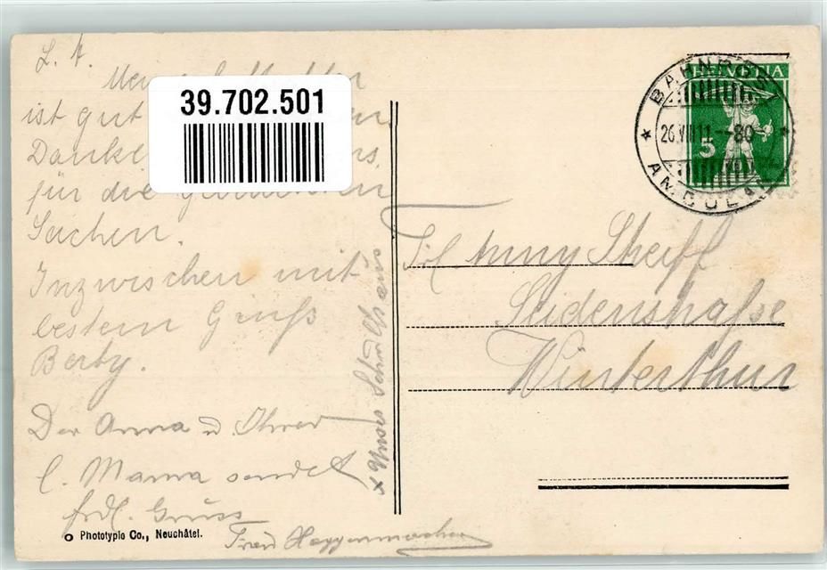 La Neuveville, Bahnpost Zug 80
