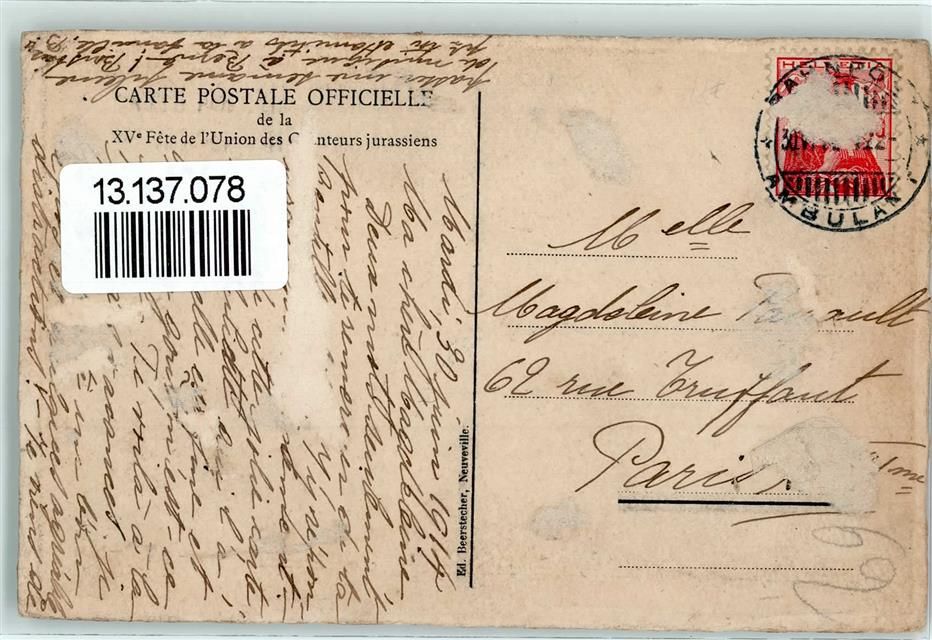 La Neuveville, XV. Fete de l'Union des Chanteurs juarssiens sign Künstlerkarte