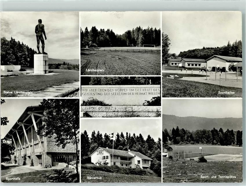 Magglingen, Eidg. Turn und Sportschule Statue Lärchenplatz Bärnerhus Sporthallen Tennisplätze