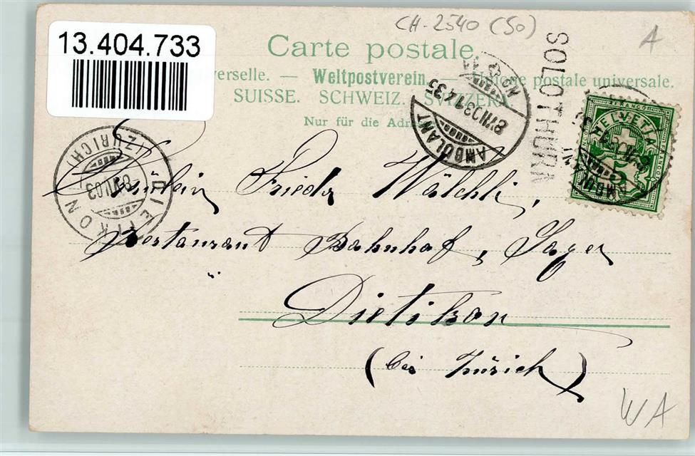Grenchen, Buchdruck Druckerei Jugendstil Bahnpoststempel Postablage