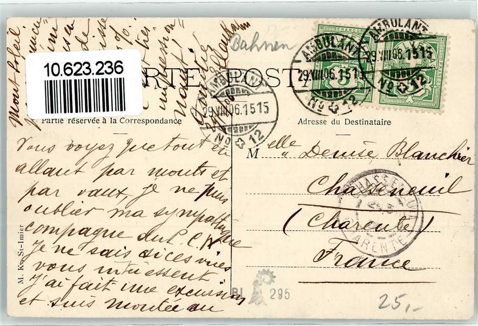 2610 St-Imier Saint-Imier 1906 - Funiculaire Mont Soleil Bahnpost 1515 No 12