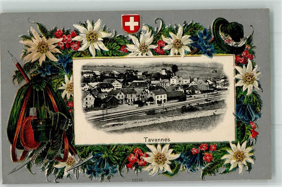 2710 Tavannes Prägedruck Bahnhof Lithographie
