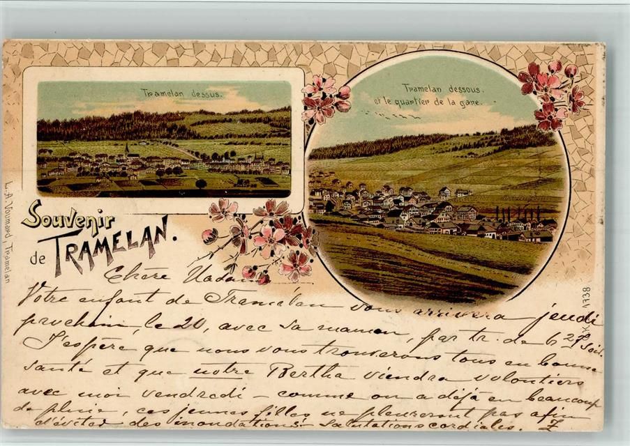 Tramelan, Lithographie Quartier de la gare Verlag Künzli Nr 1738