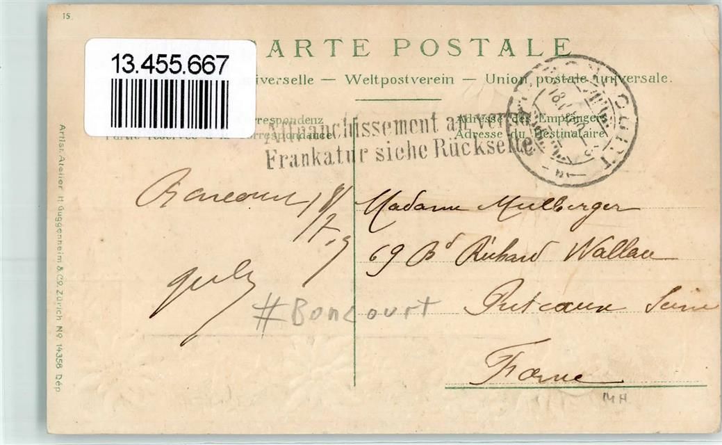 2926 Boncourt 1909 Prägedruck Bahnlinie Lithographie