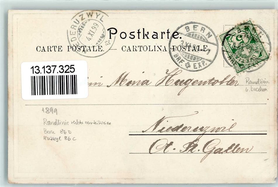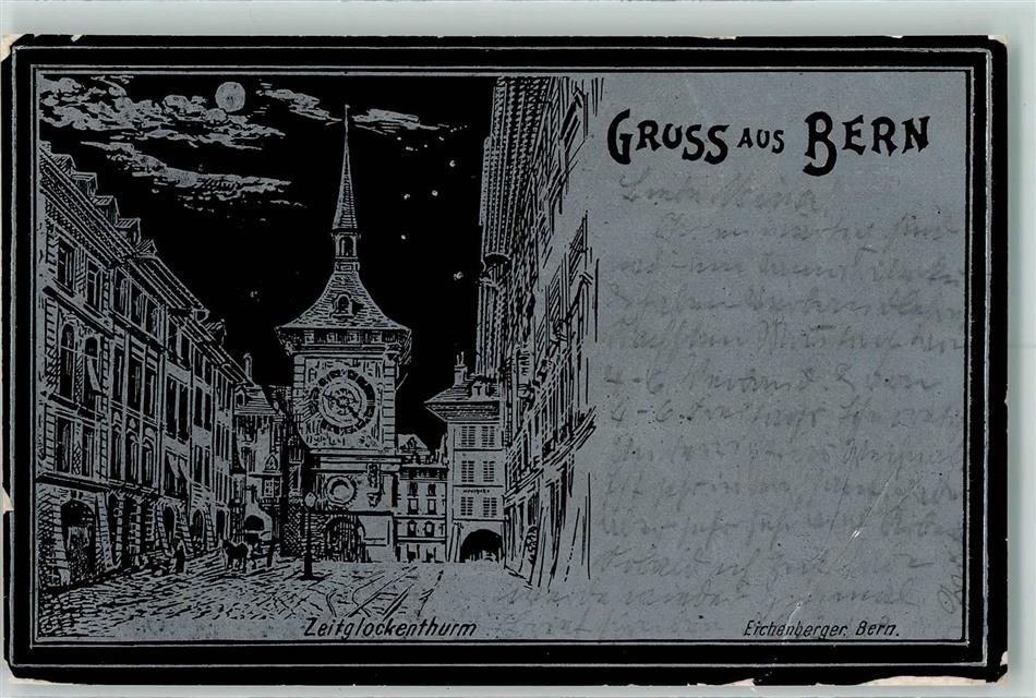3000 Bern Berne 1899 Gebrauchsspuren Zeitglockenturm Mondschein Künstlerkarte