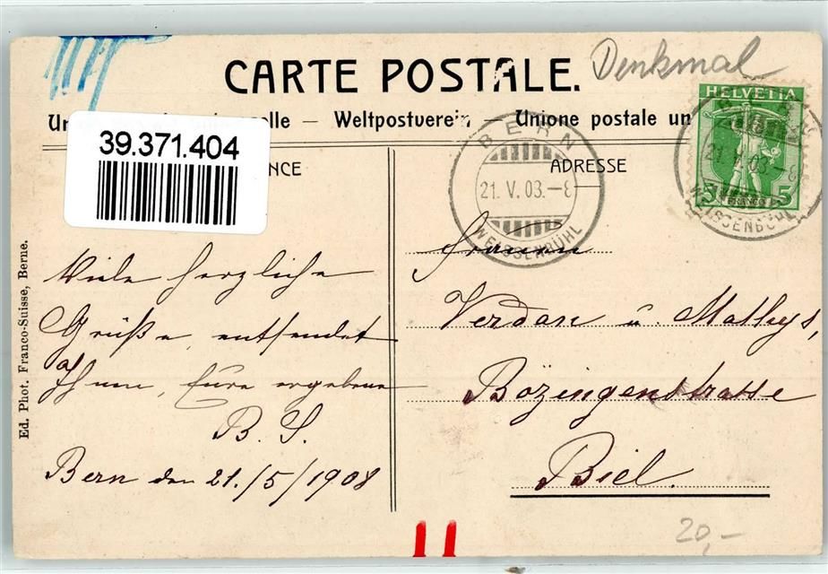 3000 Bern Berne 1903 - Statue Adrian von Bubenberg