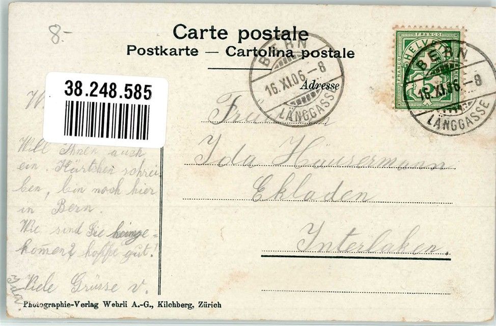 3000 Bern Berne 1906 Gebrauchsspuren Straßenbahn Brücke Theater