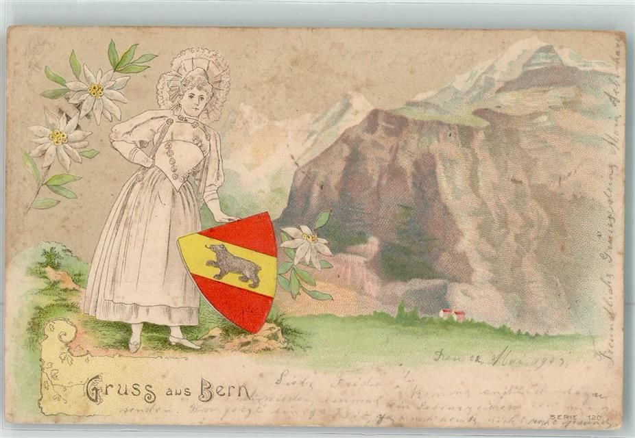 3000 Bern Berne 1908 Prägedruck Wappen Tracht Edelweiss