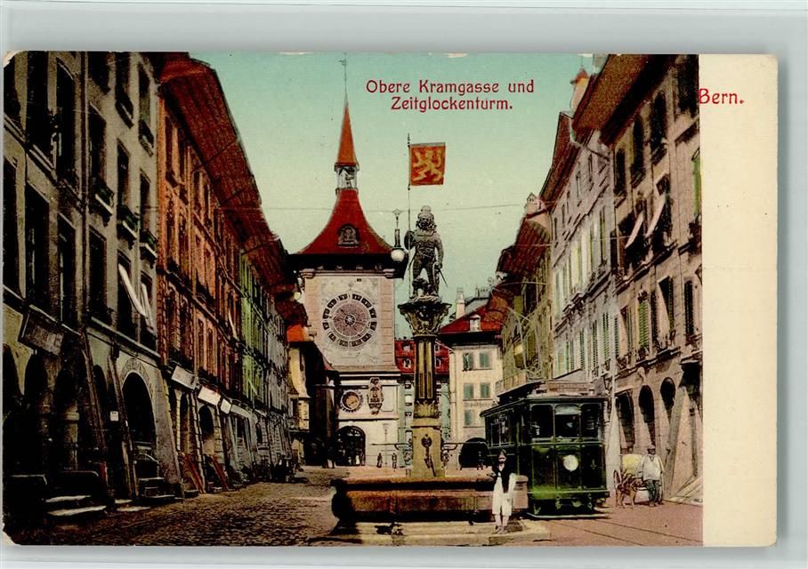 3000 Bern Berne 1911 - Obere Kramgasse und Zeitglockenturm Tram