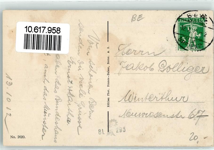 3000 Bern Berne 1912 - Adrian von Bubenberg Denkmal