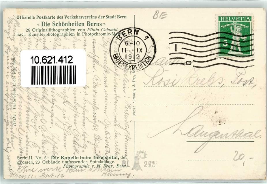 3000 Bern Berne 1912 - Kapelle beim Inselspital