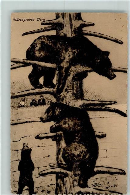 3000 Bern Berne 1913 Künstlerkarte Bärengraben sign Herkis