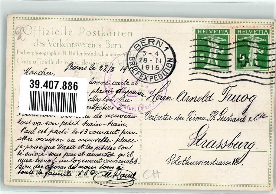 3000 Bern Berne 1915 - Weltpostverein Denkmal
