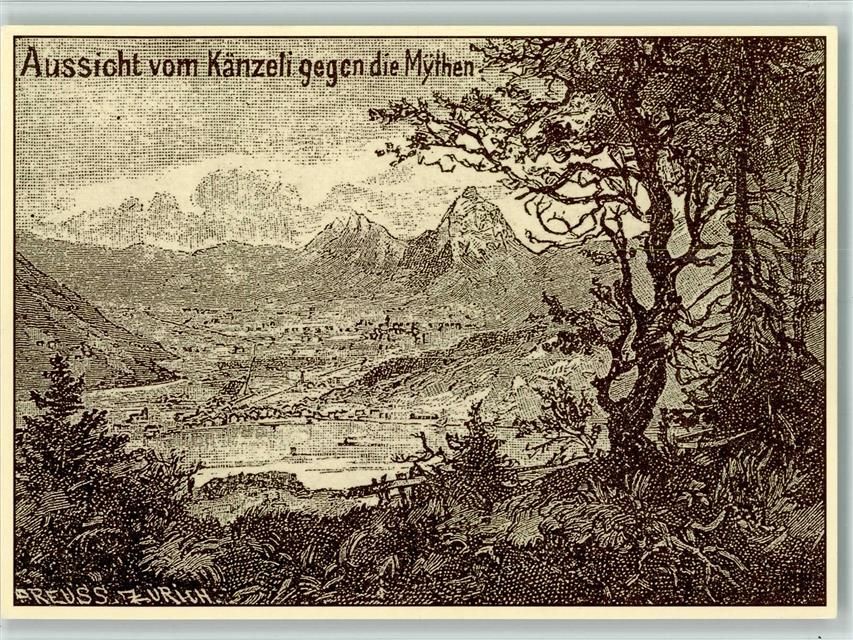 3000 Bern Berne 1920 Künstlerkarte sign Reuss - Aussicht vom Känzeli gegen die Mythen , sehr gute Erhaltung AK