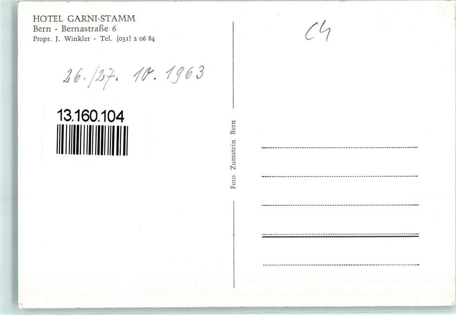 3000 Bern Berne Foto AK Hotel Garni Stamm