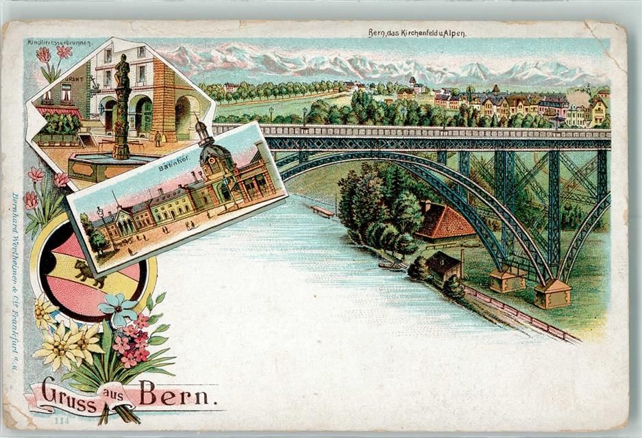 3000 Bern Berne Gebrauchsspuren Bahnhof Kindlifresserbrunnen Kirchenfeld Alpen Lithographie