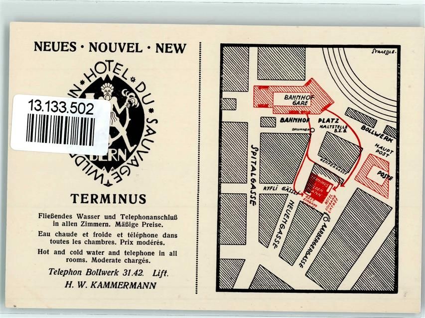 3000 Bern Berne KEINE AK Hotel Terminus Wilden Mann