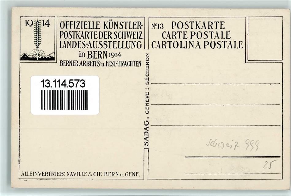 Bern, 1914 Offizielle Künstler-Postkarte der Schweiz. Landes-Ausstellung Berner Arbeits- und Fest-Trachten Kuh