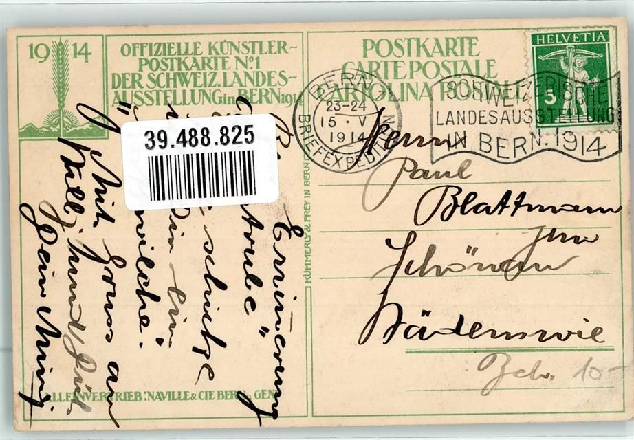 Bern, Landesausstellung 191 Nr.1 sign. P.Wyss