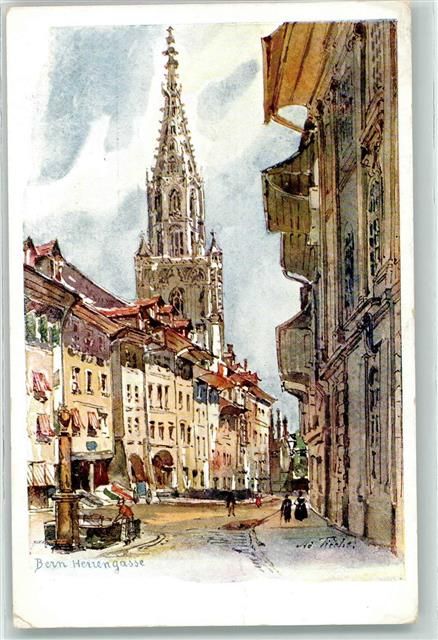 3000 Bern Berne Künstlerkarte Münster Herrengasse sign.