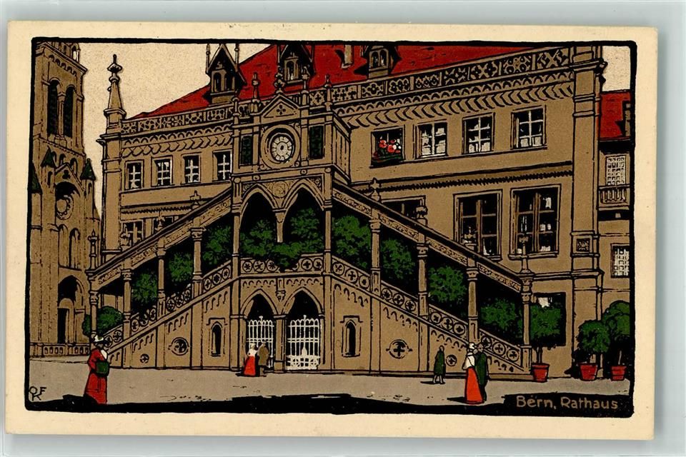 3000 Bern Berne Künstlerkarte Rathaus sign. KF Steinzeichnung