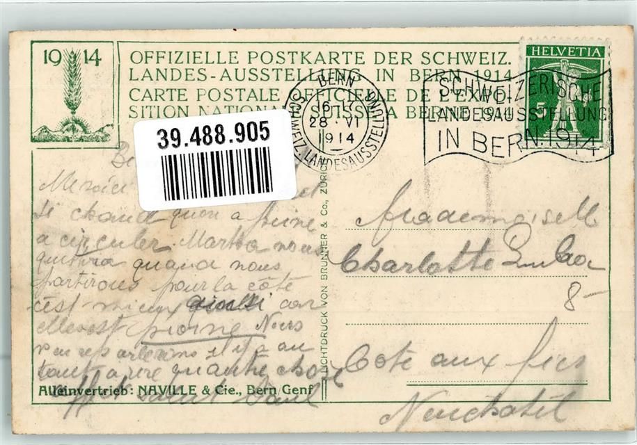Bern, Landesausstellung 1914Nr. 48 Gasthaus Studerstein Ausstellungsstempel