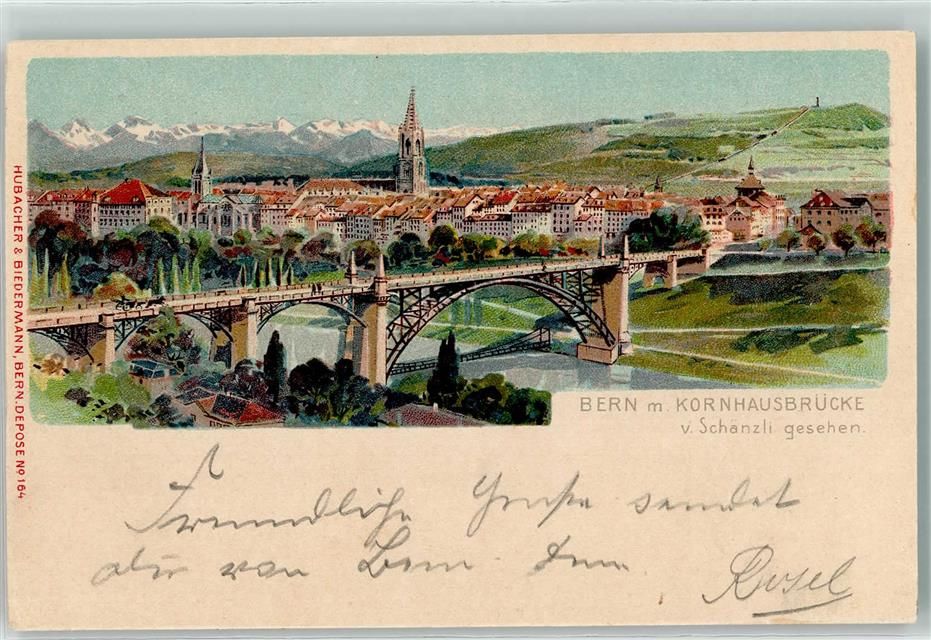 3000 Bern Berne Lithographie Kornhausbrücke vom Schanzli gesehen