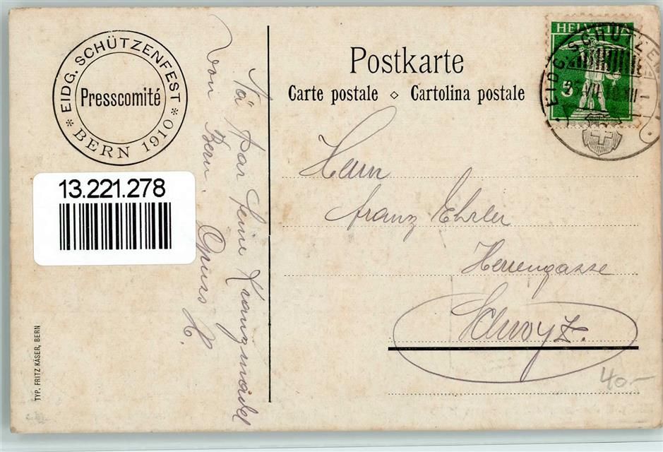 Bern, Tanz Festplatz 1910 klassischer Sonderstempel